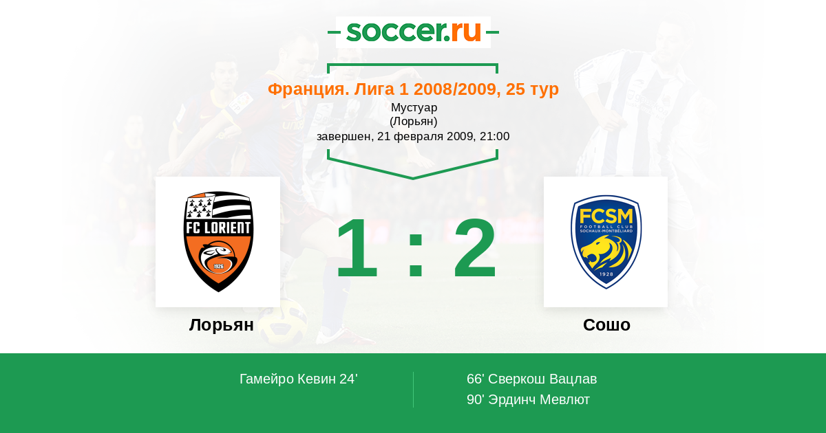 Лорьян - Сошо: обзор матча 21 февраля 2009