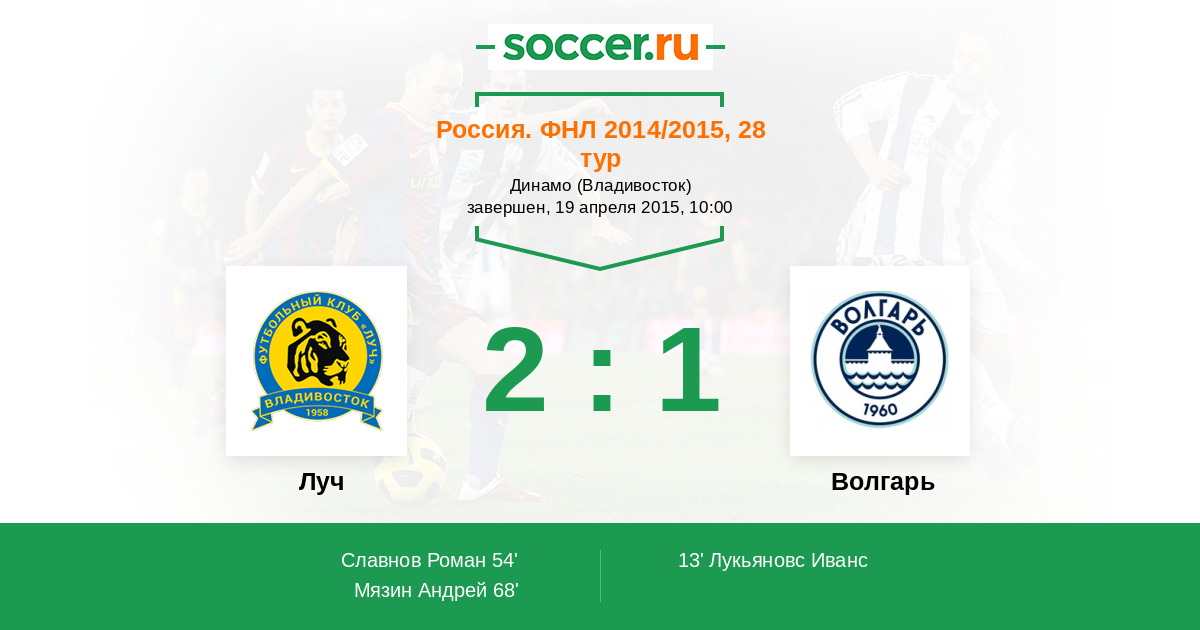 Луч - Волгарь: обзор матча 19 апреля 2015