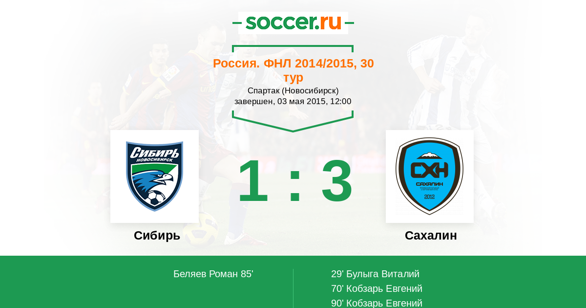 Сибирь - Сахалин: обзор матча 3 мая 2015