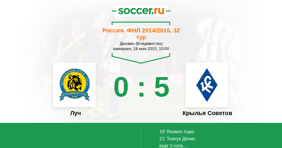 Луч - Крылья Советов: обзор матча 16 мая 2015