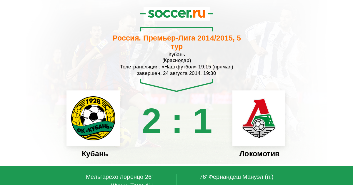 Кубань - Локомотив: обзор матча 24 августа 2014