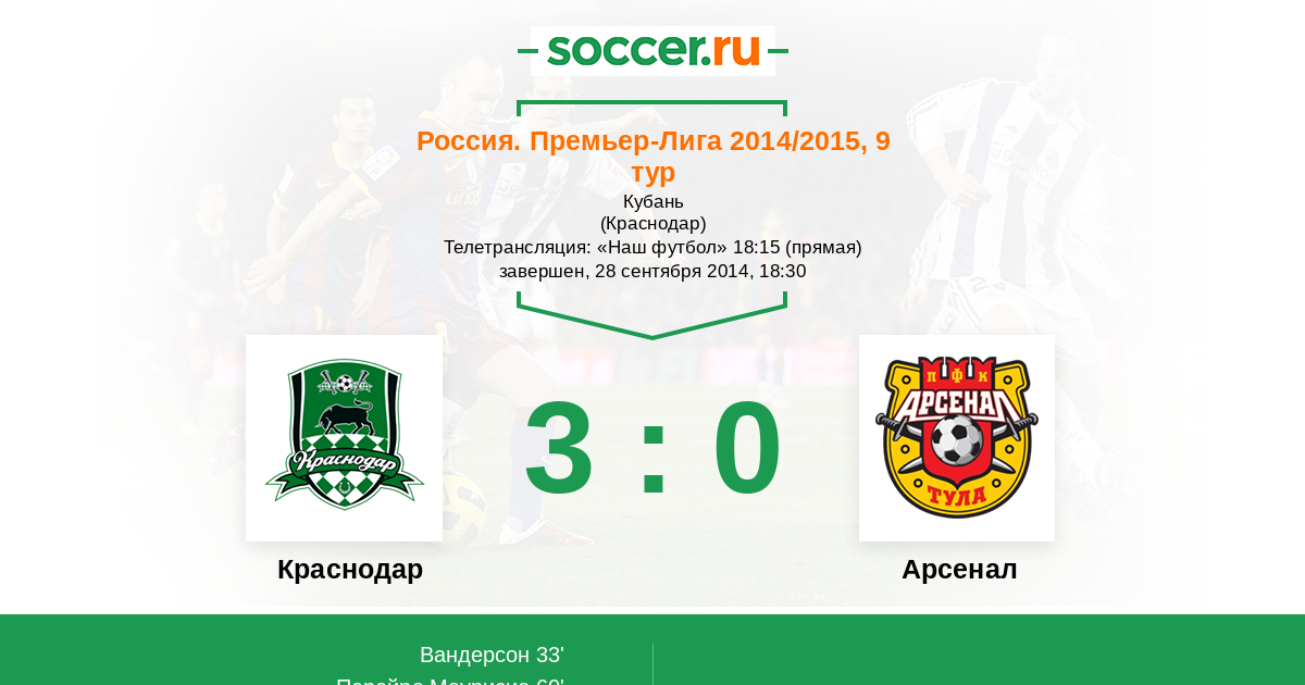Краснодар - Арсенал: обзор матча 28 сентября 2014