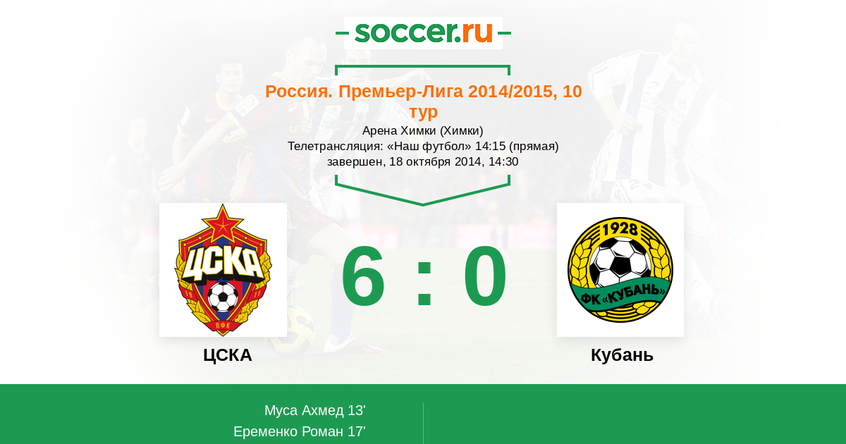 ЦСКА - Кубань: обзор матча 18 октября 2014