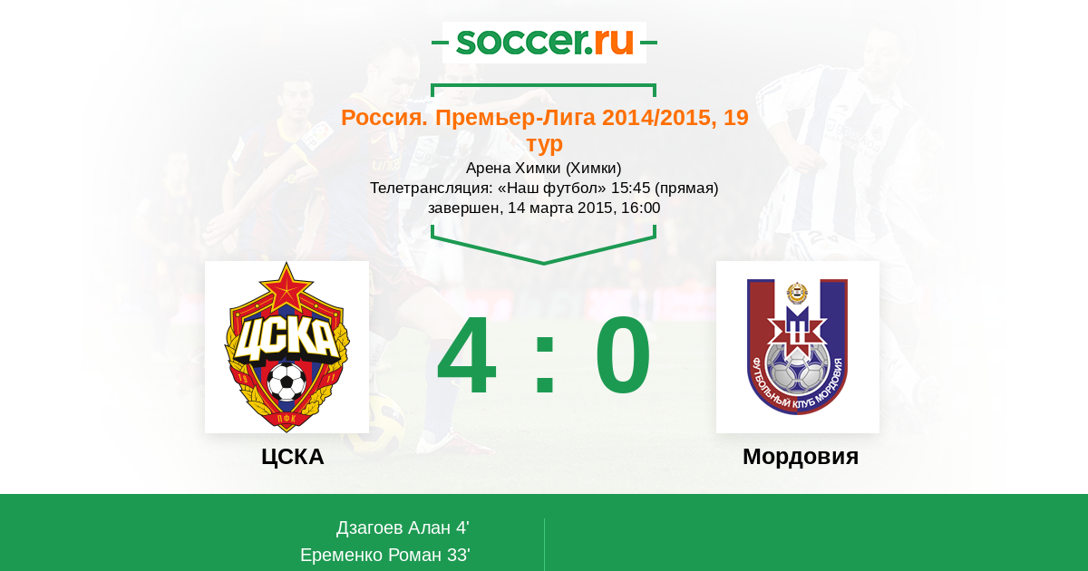 ЦСКА - Мордовия: обзор матча 14 марта 2015