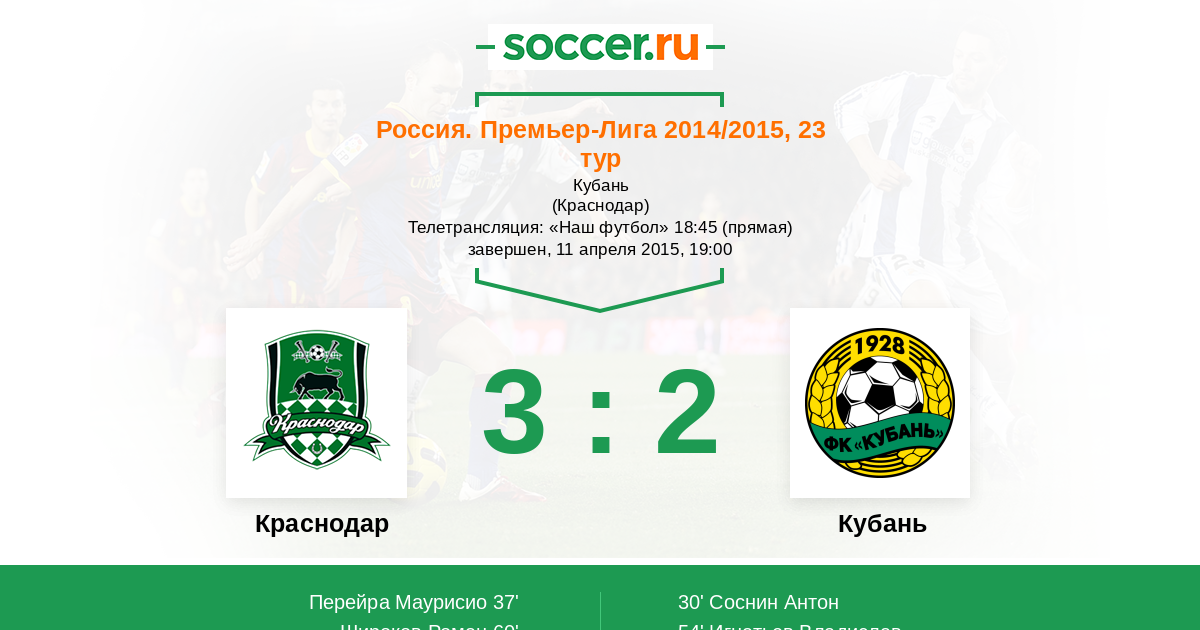 Краснодар - Кубань: обзор матча 11 апреля 2015