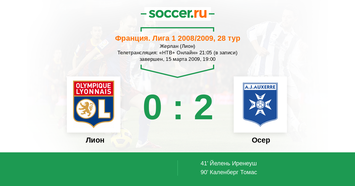 Лион, Жерлан Телетрансляция: "НТВ+ Онлайн" 21:05 (в записи)