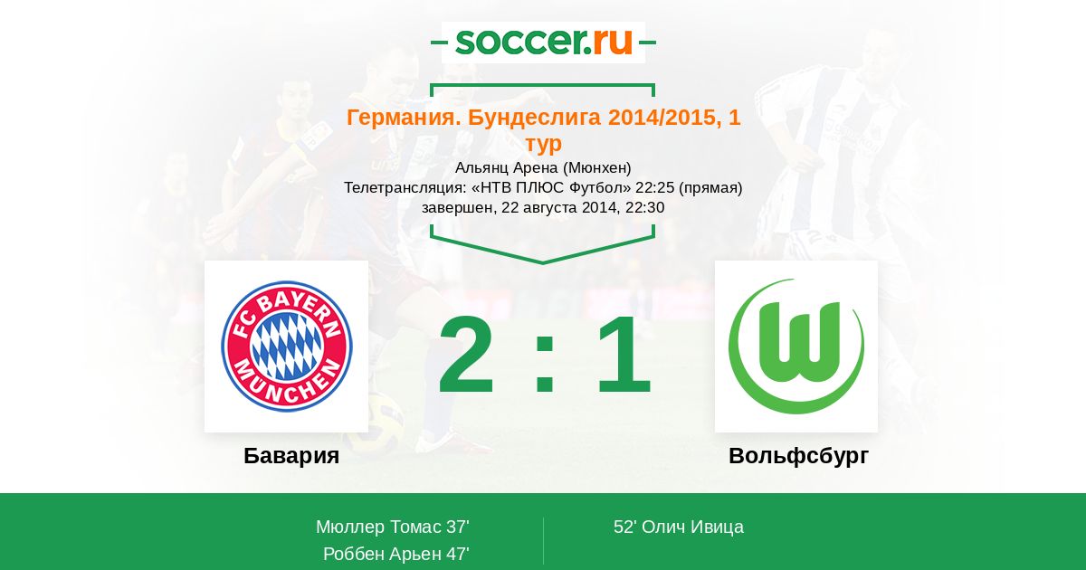 Бавария - Вольфсбург: обзор матча 22 августа 2014