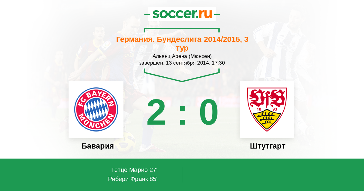 Бавария - Штутгарт: обзор матча 13 сентября 2014