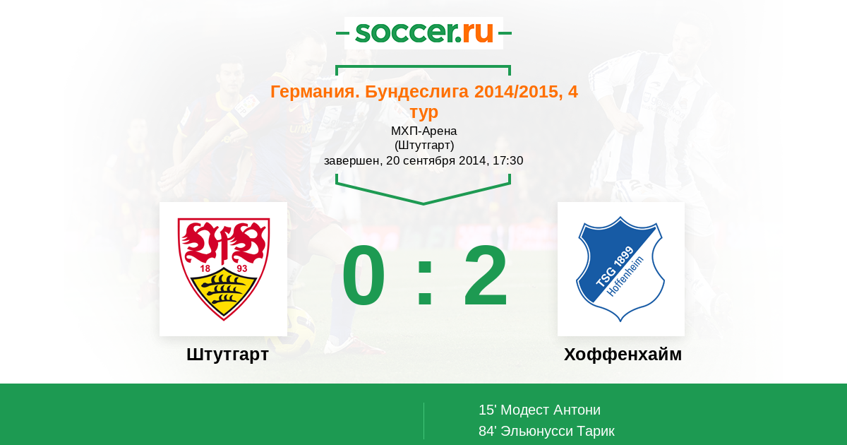 Штутгарт - Хоффенхайм: обзор матча 20 сентября 2014