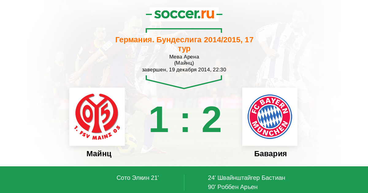 Майнц - Бавария: обзор матча 19 декабря 2014