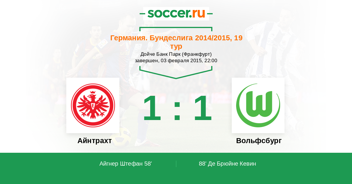 Айнтрахт - Вольфсбург: обзор матча 3 февраля 2015