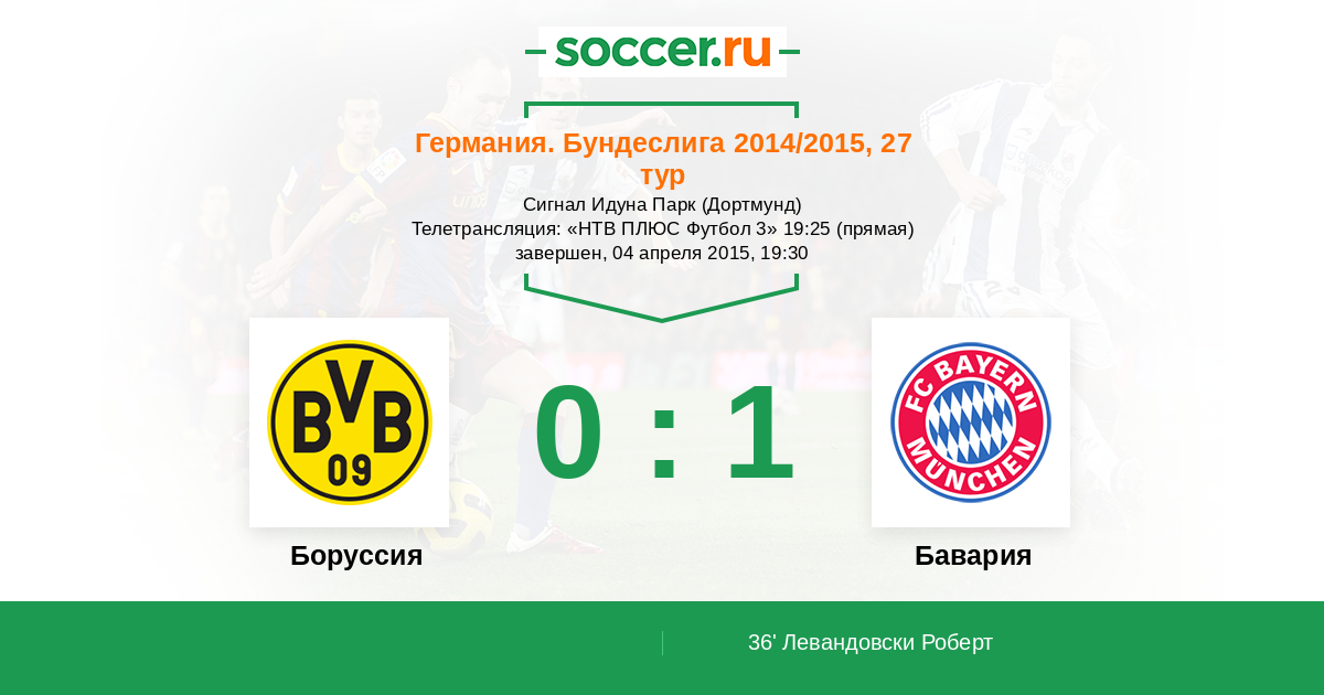 Боруссия - Бавария: обзор матча 4 апреля 2015