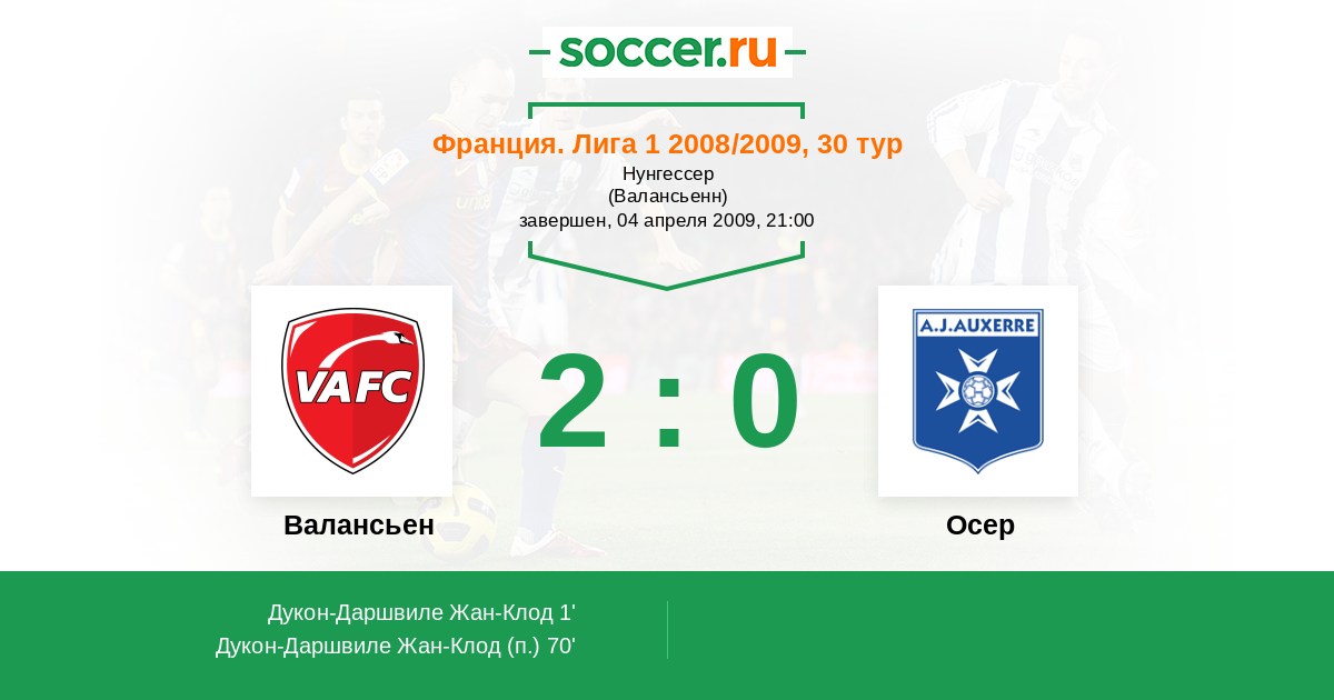 Валансьен - Осер: обзор матча 4 апреля 2009