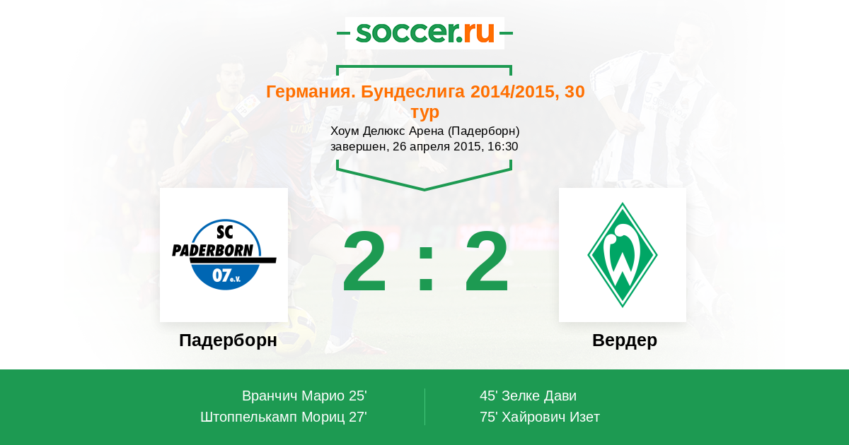 Падерборн - Вердер: обзор матча 26 апреля 2015