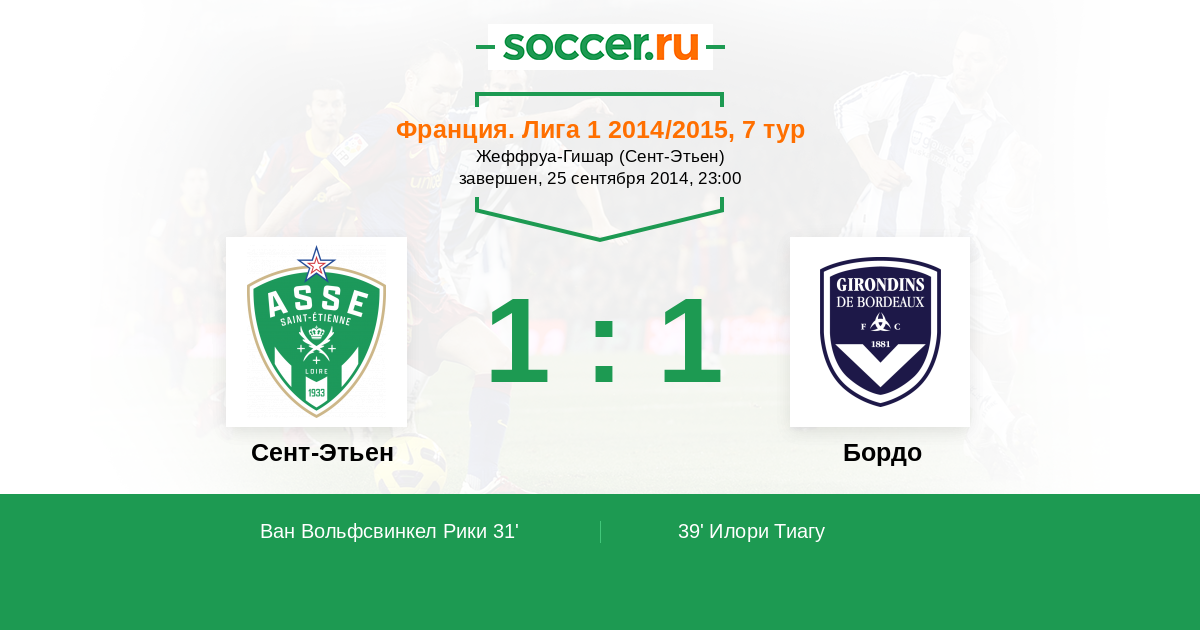 Сент-Этьен - Бордо: обзор матча 25 сентября 2014