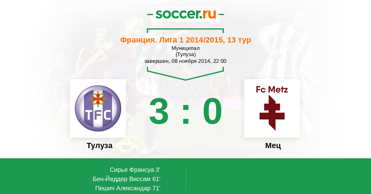 Тулуза - Мец: обзор матча 8 ноября 2014