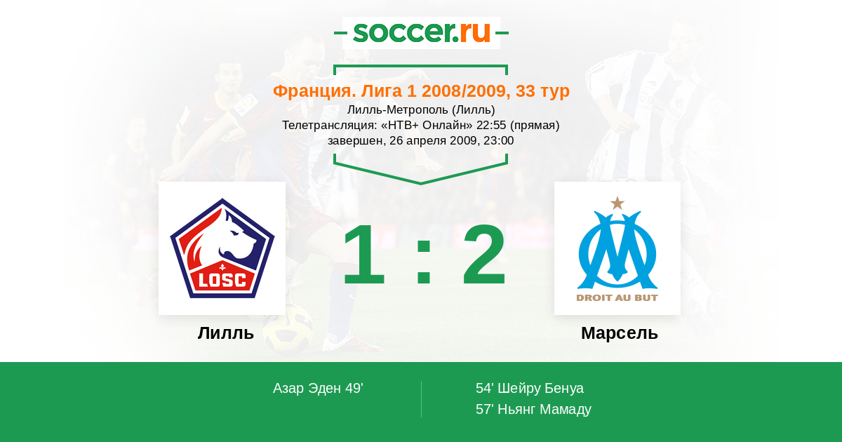 Лилль - Марсель: обзор матча 26 апреля 2009