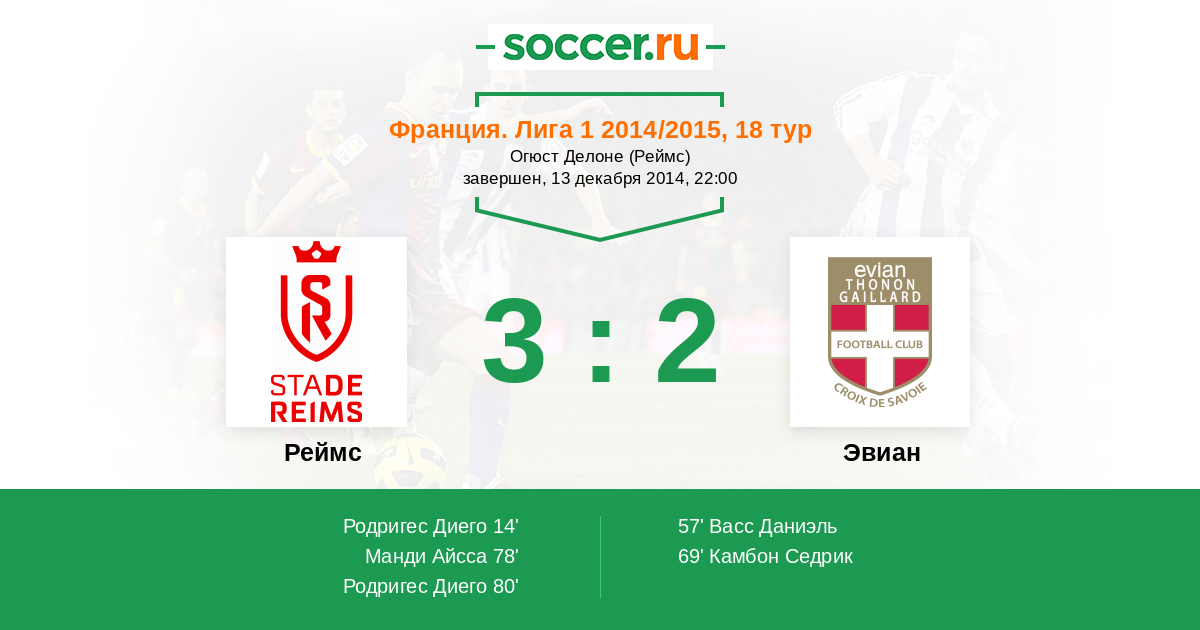 Реймс - Эвиан: обзор матча 13 декабря 2014