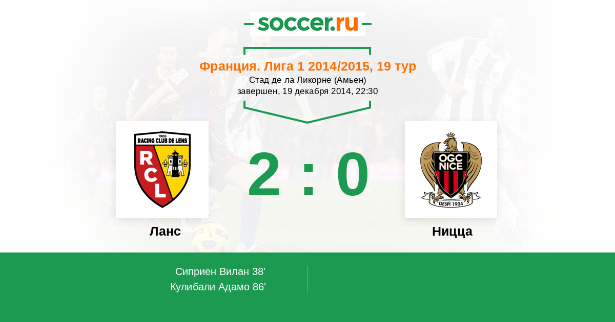 Ланс - Ницца: обзор матча 19 декабря 2014