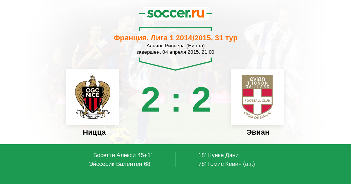 Ницца - Эвиан: обзор матча 4 апреля 2015