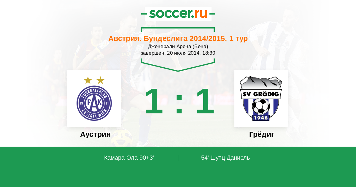 Аустрия - Грёдиг: обзор матча 20 июля 2014