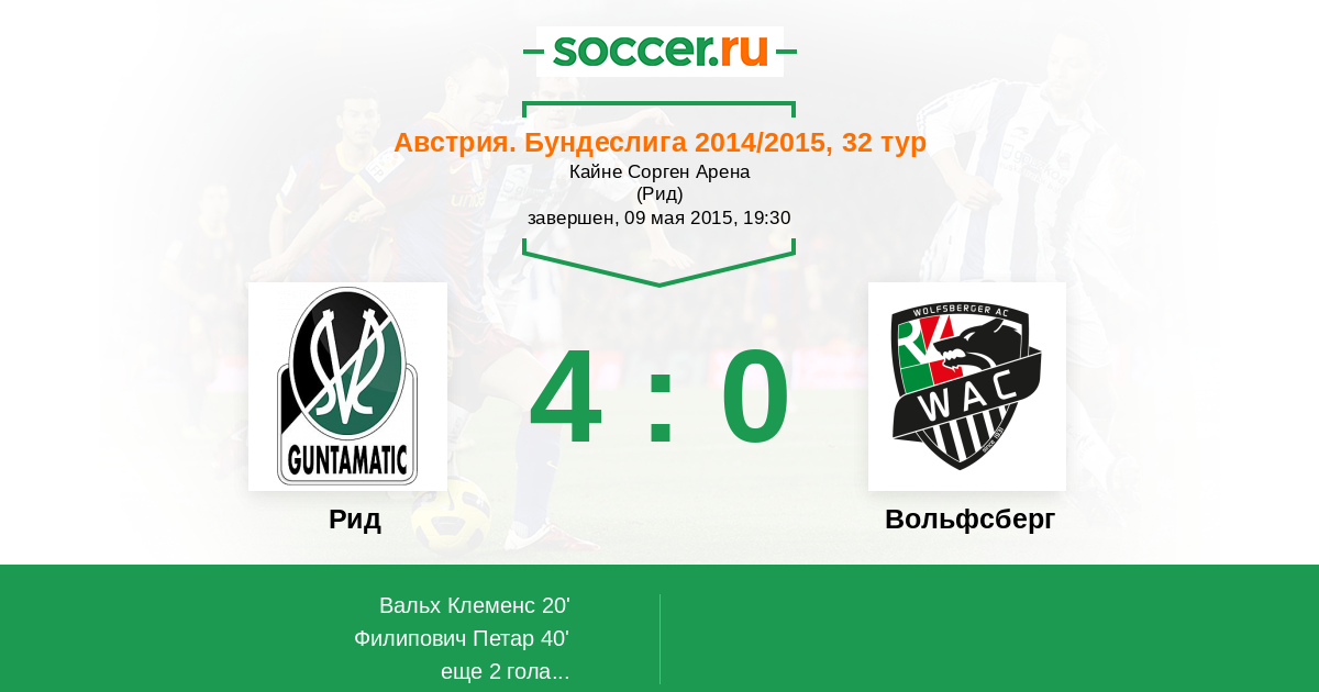 Рид - Вольфсберг: обзор матча 9 мая 2015