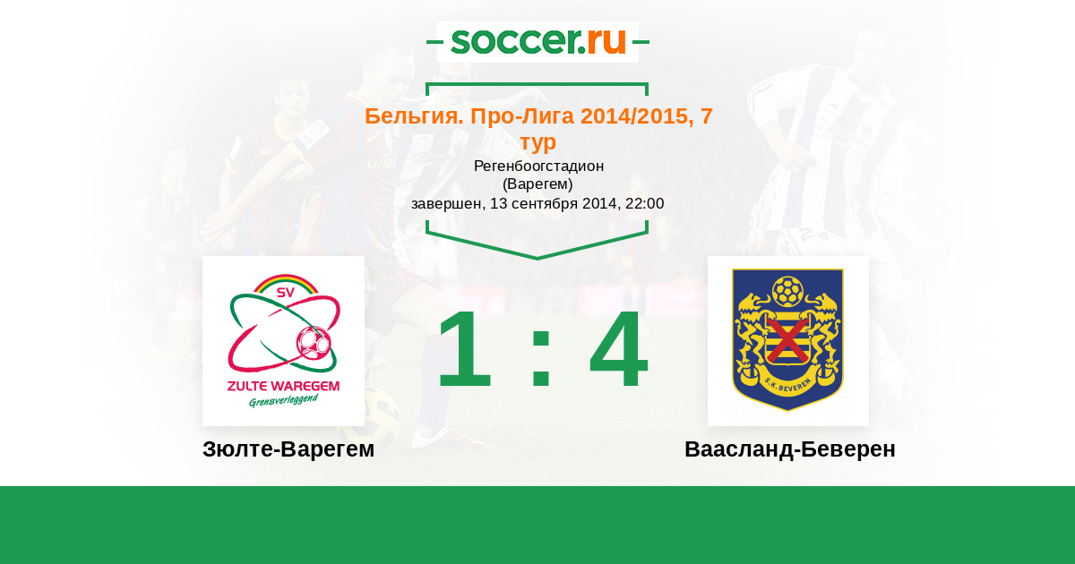 Зюлте-Варегем - Ваасланд-Беверен: обзор матча 13 сентября 2014