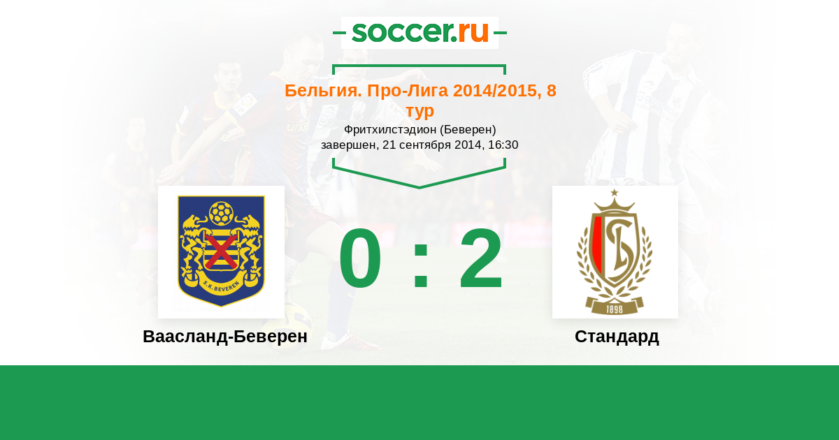 Ваасланд-Беверен - Стандард: обзор матча 21 сентября 2014