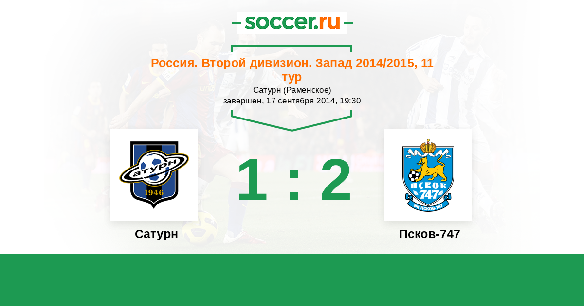 Сатурн - Псков-747: обзор матча 17 сентября 2014