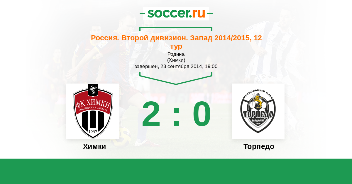 Химки - Торпедо: обзор матча 23 сентября 2014