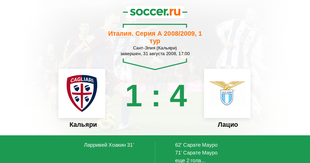 Кальяри - Лацио: обзор матча 31 августа 2008