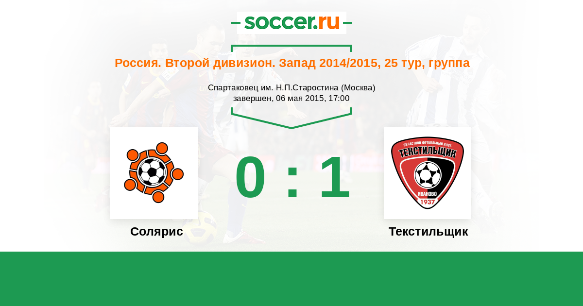 Солярис - Текстильщик: обзор матча 6 мая 2015