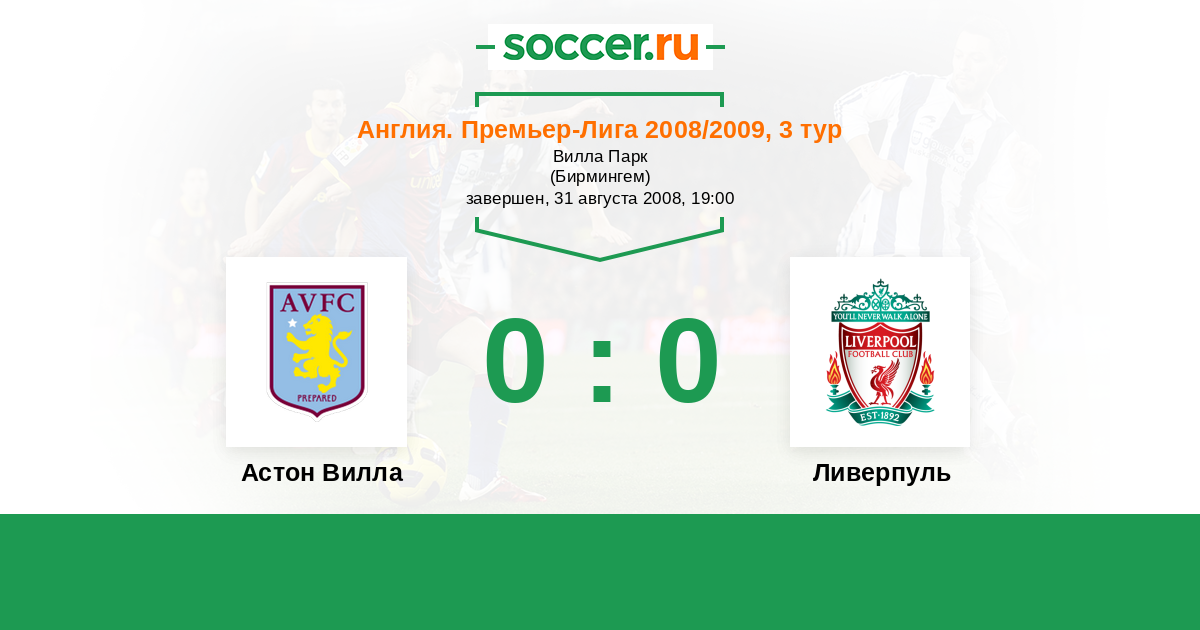 Астон Вилла - Ливерпуль: обзор матча 31 августа 2008