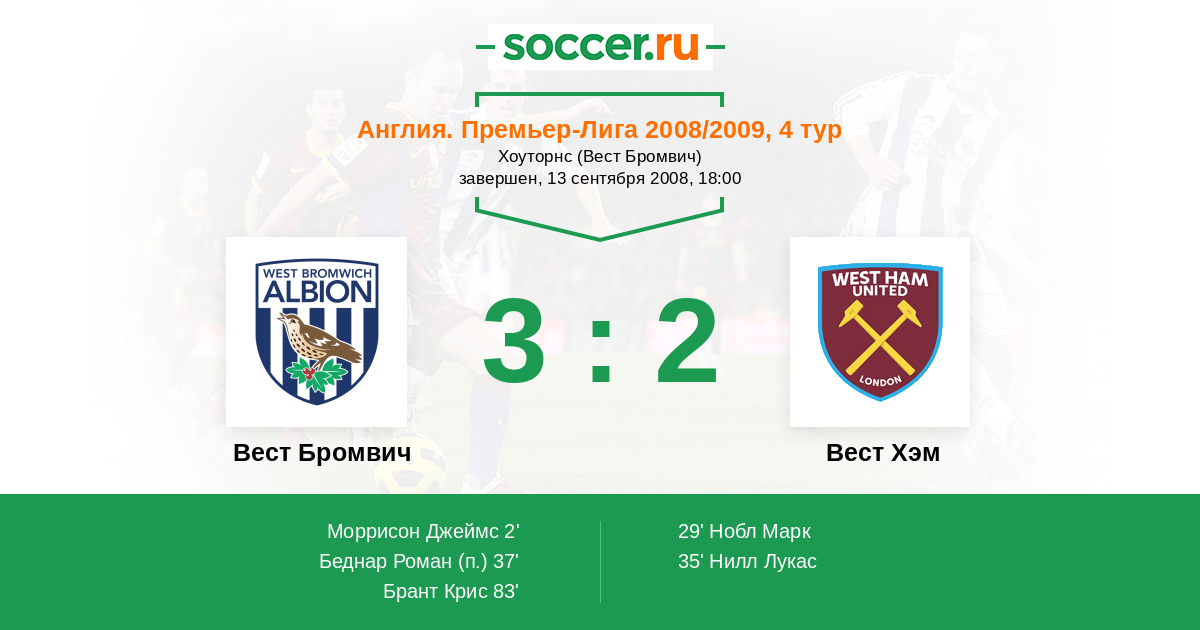Вест Бромвич - Вест Хэм: обзор матча 13 сентября 2008