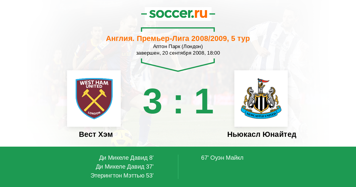 Вест Хэм - Ньюкасл Юнайтед: обзор матча 20 сентября 2008