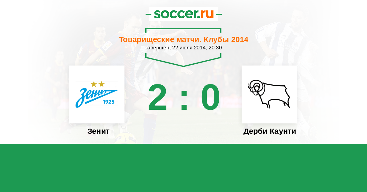Зенит - Дерби Каунти: обзор матча 22 июля 2014