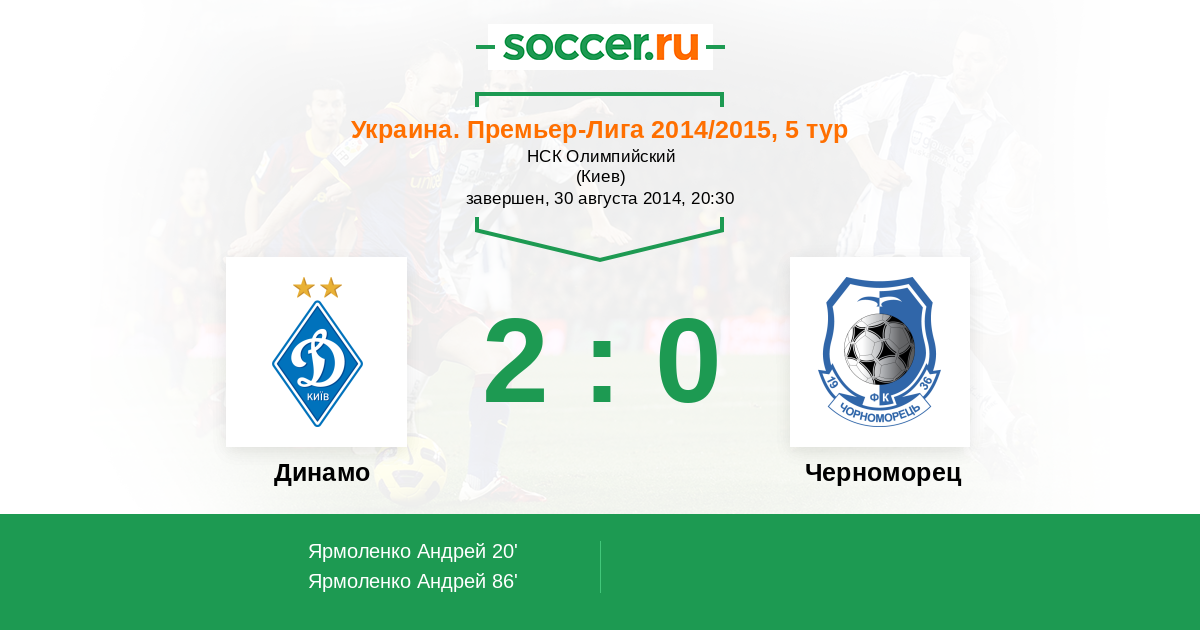 Динамо - Черноморец: обзор матча 30 августа 2014