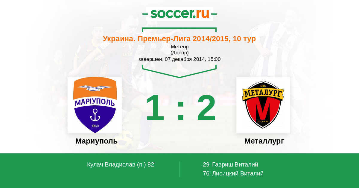 Ильичевец - Металлург: обзор матча 7 декабря 2014