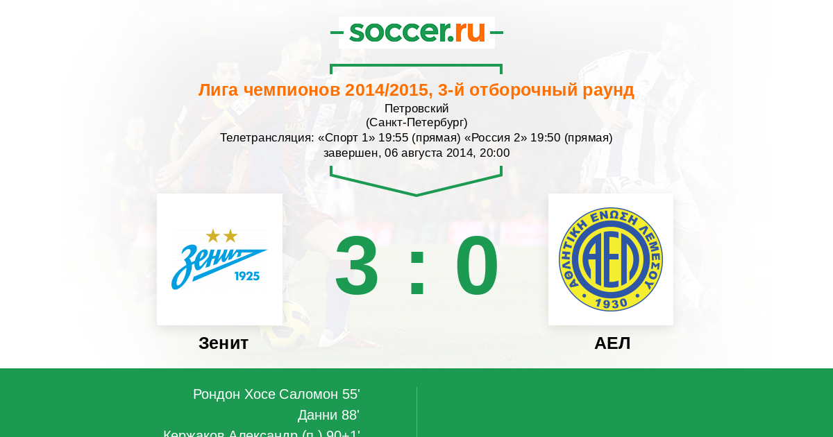Зенит - АЕЛ: обзор матча 6 августа 2014