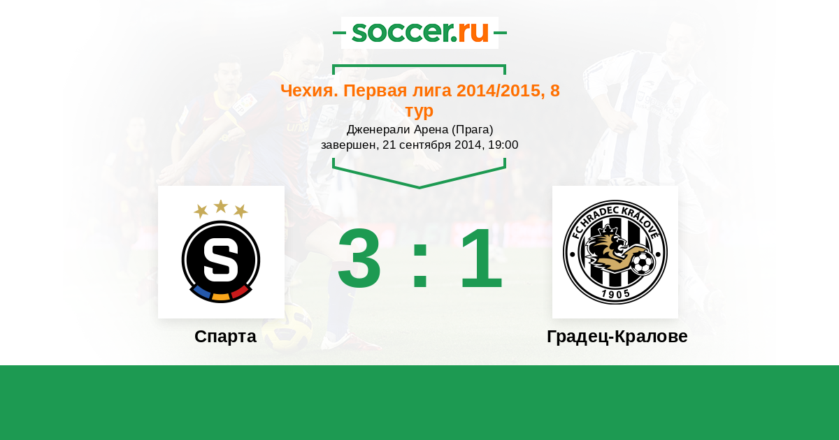 Спарта - Градец-Кралове: обзор матча 21 сентября 2014