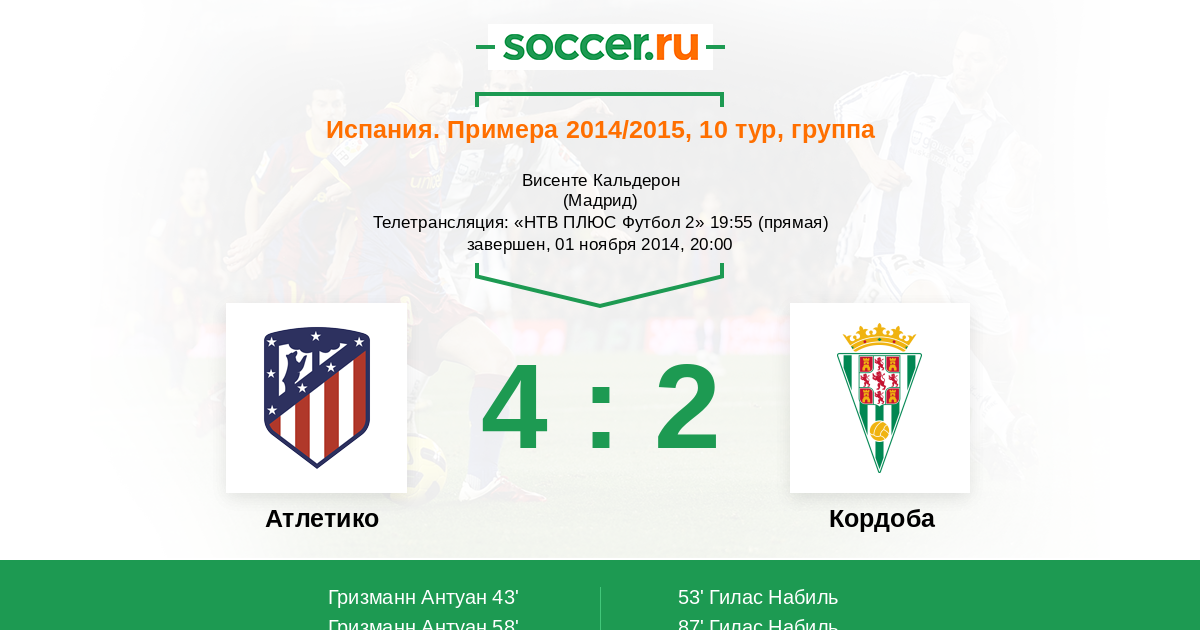 Атлетико - Кордоба: обзор матча 1 ноября 2014