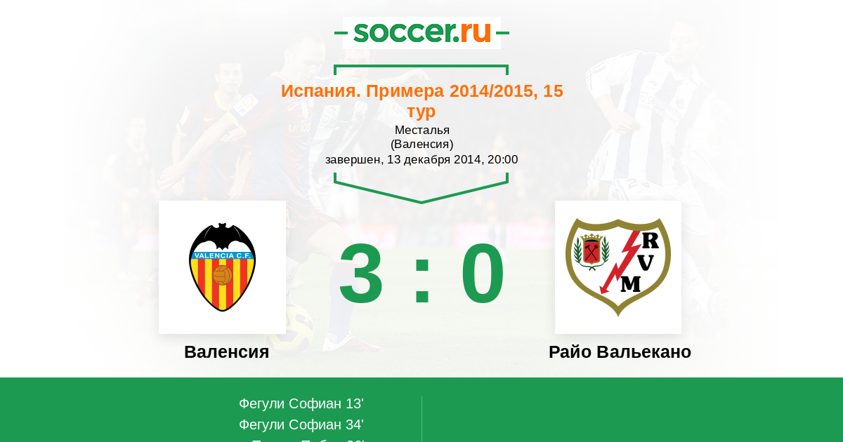 Валенсия - Райо Вальекано: обзор матча 13 декабря 2014