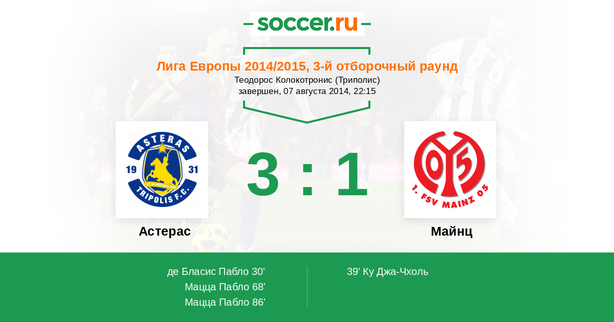 Астерас - Майнц: обзор матча 7 августа 2014