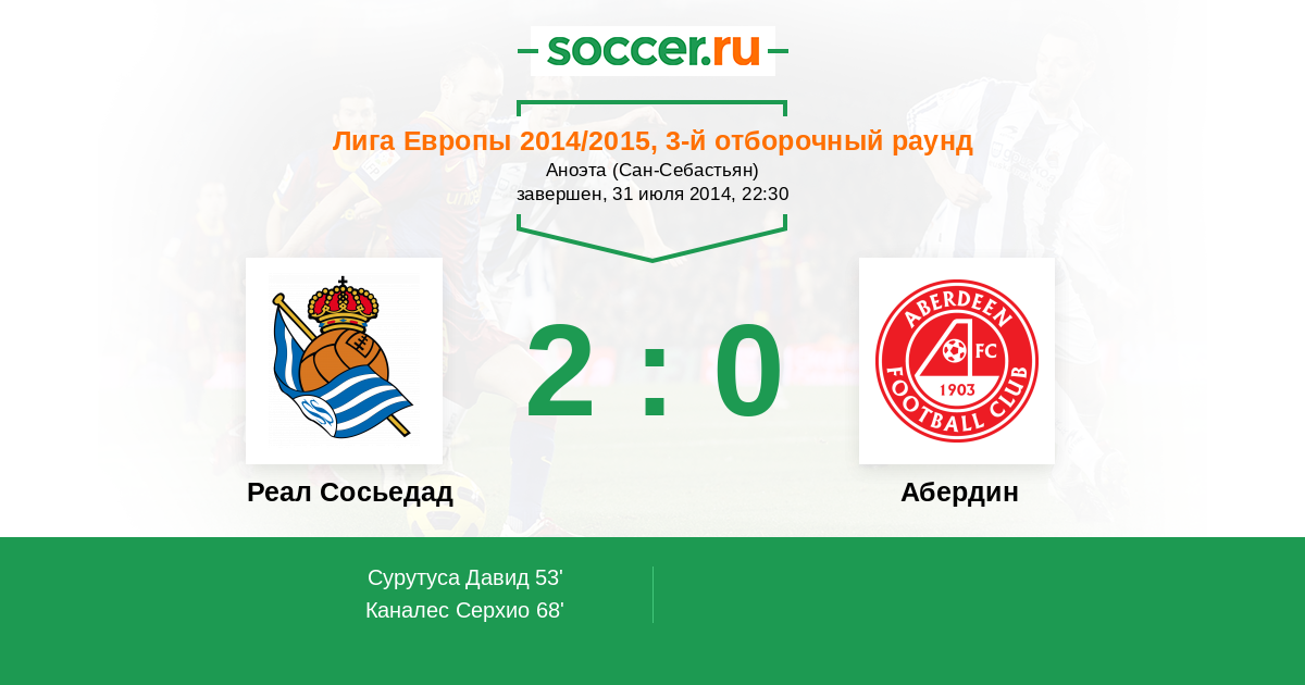 Реал Сосьедад - Абердин: обзор матча 31 июля 2014
