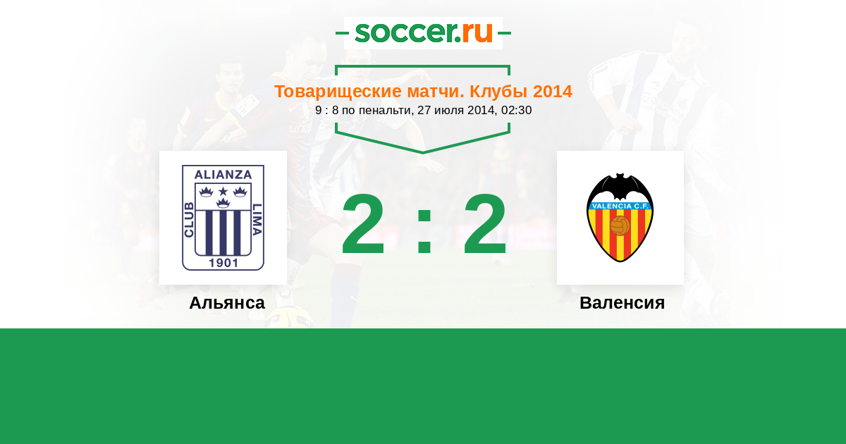 Альянса - Валенсия: обзор матча 27 июля 2014
