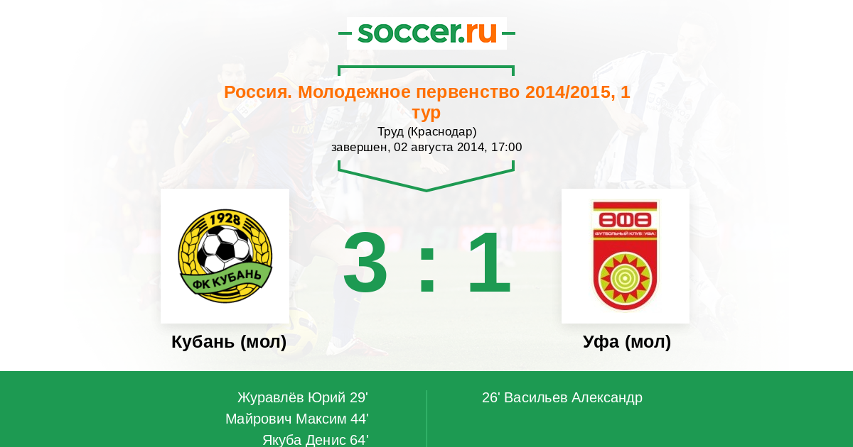 Кубань (мол) - Уфа (мол): обзор матча 2 августа 2014
