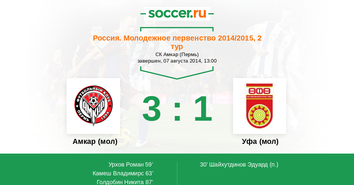 Амкар (мол) - Уфа (мол): обзор матча 7 августа 2014