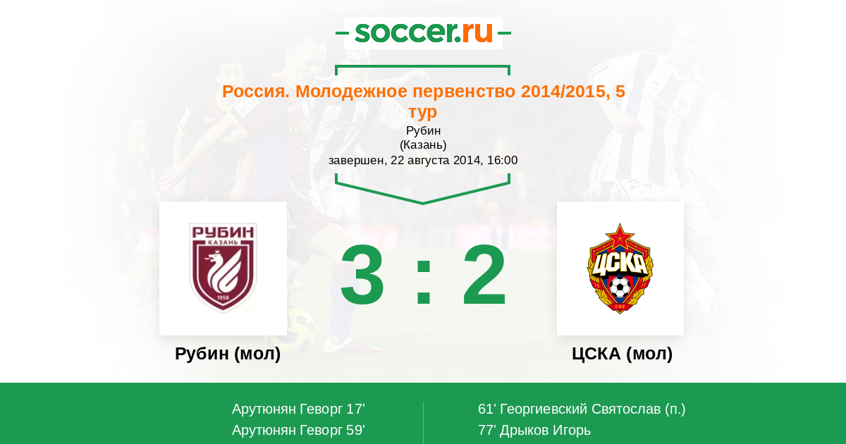 Рубин (мол) - ЦСКА (мол): обзор матча 22 августа 2014