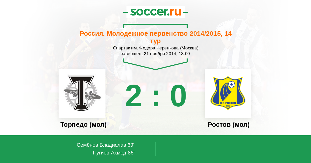 Торпедо (мол) - Ростов (мол): обзор матча 21 ноября 2014