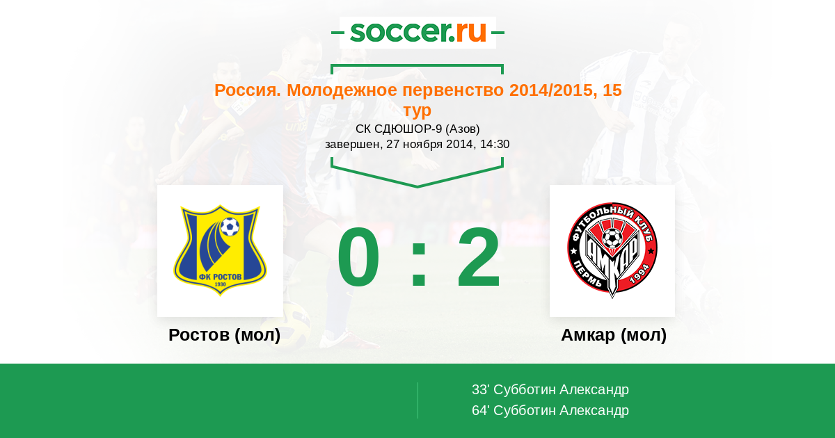 Ростов (мол) - Амкар (мол): обзор матча 27 ноября 2014